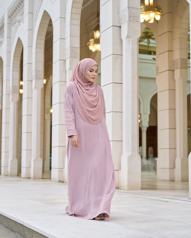 The Abaya Lace Cassidy in Dusty Rose offers a soft pink hue with lace detailing, perfect for spring or summer occasions. Its design ensures both elegance and comfort.